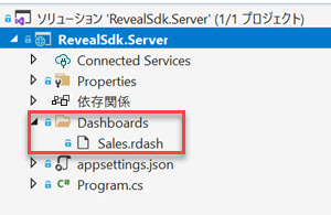 デフォルトでは Reveal SDK はファイル パスからダッシュボードをロードする規約を使用しています。具体的には、Reveal SDK はサーバー上の作業ディレクトリにある Dashboards フォルダー内でダッシュボードを探します。