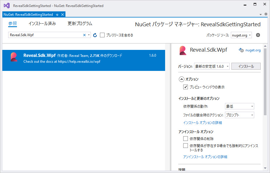 以下の手順では、Reveal SDK を既存の WPF プロジェクトにインストールする方法について説明します。