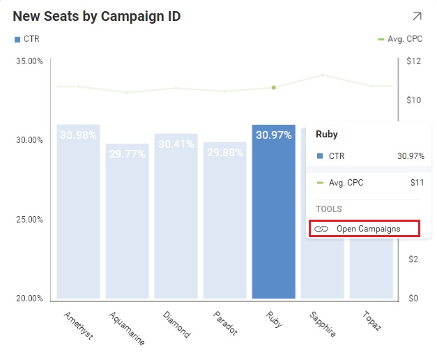 この例では、エンドユーザーが Marketing ダッシュボードの表示形式をクリックすると、RevealView.VisualizationLinkingDashboard イベントが処理さ れます。このリンクは、クリックされると Campaigns ダッシュボードに移動します。
