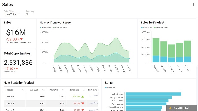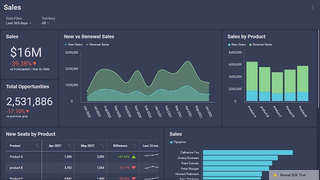 Reveal SDK を既存のアプリケーションに埋め込む場合、ダッシュボードがアプリケーションのルックアンドフィールと一致していることが重要です。定義済みの Reveal SDK テーマのいずれかがアプリケーションのテーマと一致しない場合は、アプリケーションのルックアンドフィールにより近いカスタム テーマを作成できます。