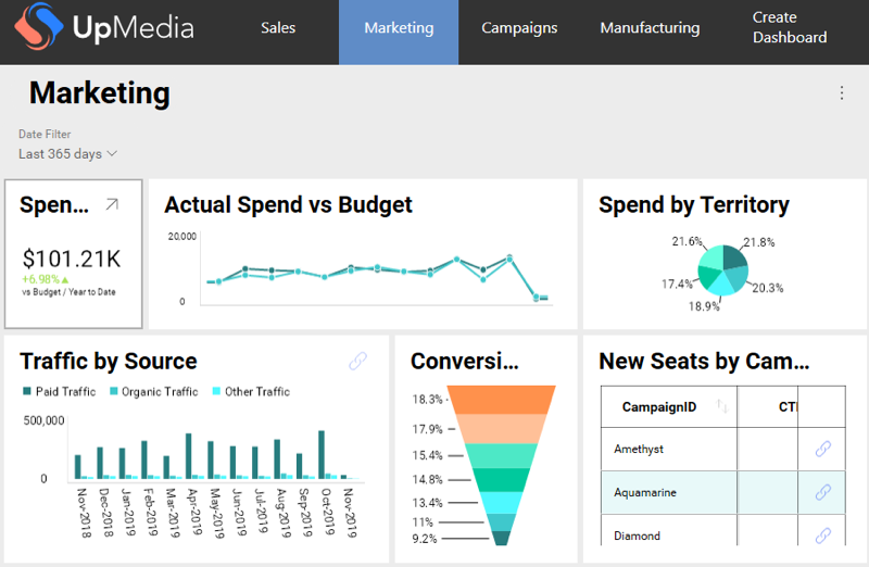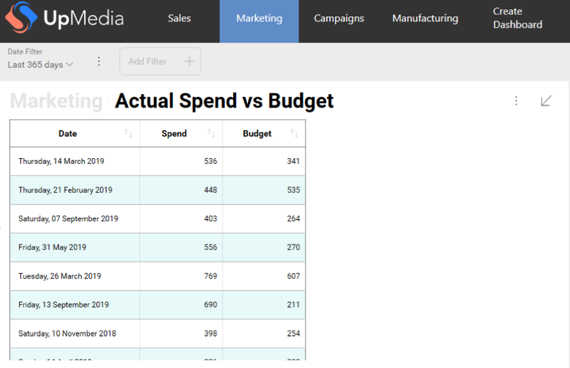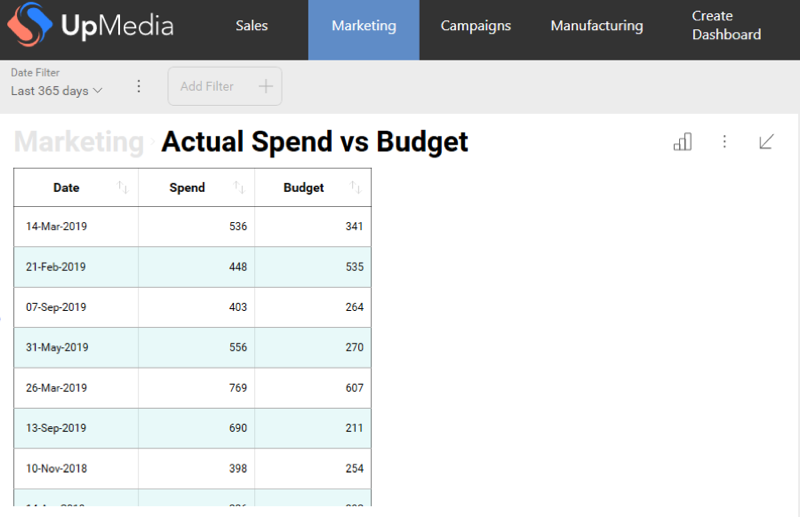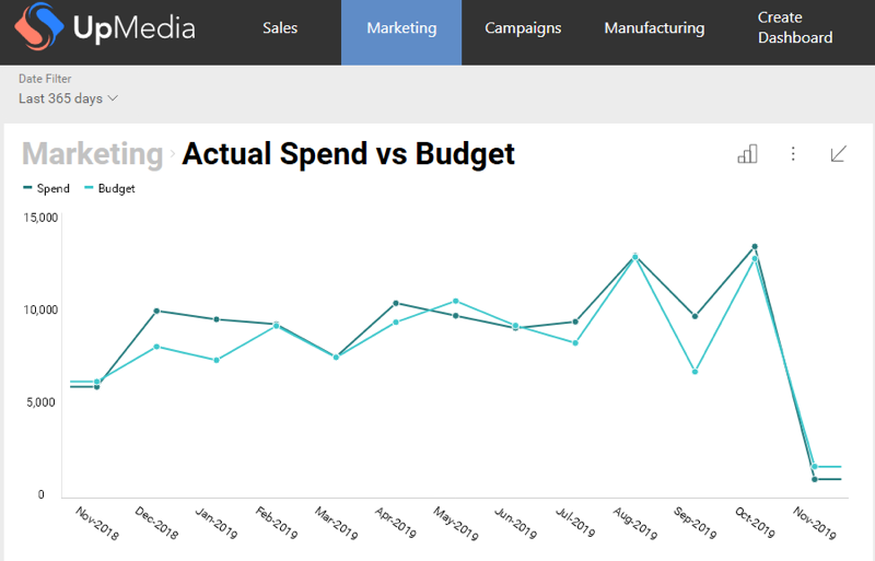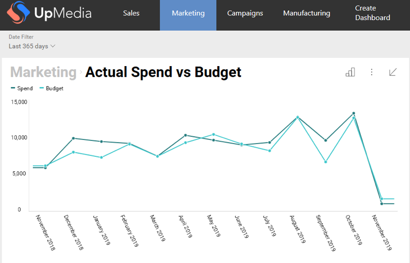 This is the initial state of one of the Marketing’s sample visualizations – Actual Spend vs Budget: