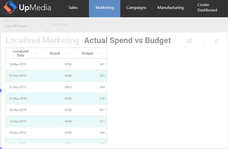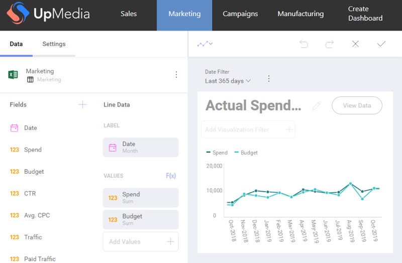 Here is the initial state of one of the Marketing's sample visualizations - Actual Spend vs Budget: