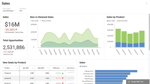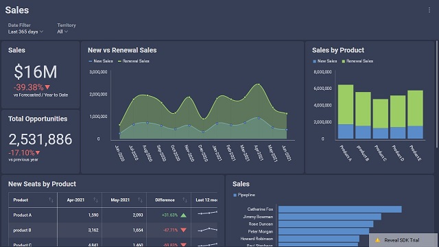 When embedding the Reveal SDK into your existing applications, it is important that the dashboards match your application's look and feel. If any of the built-in Reveal SDK themes do not match your application's theme, you can create a custom theme that more closely matches your application's look and feel.